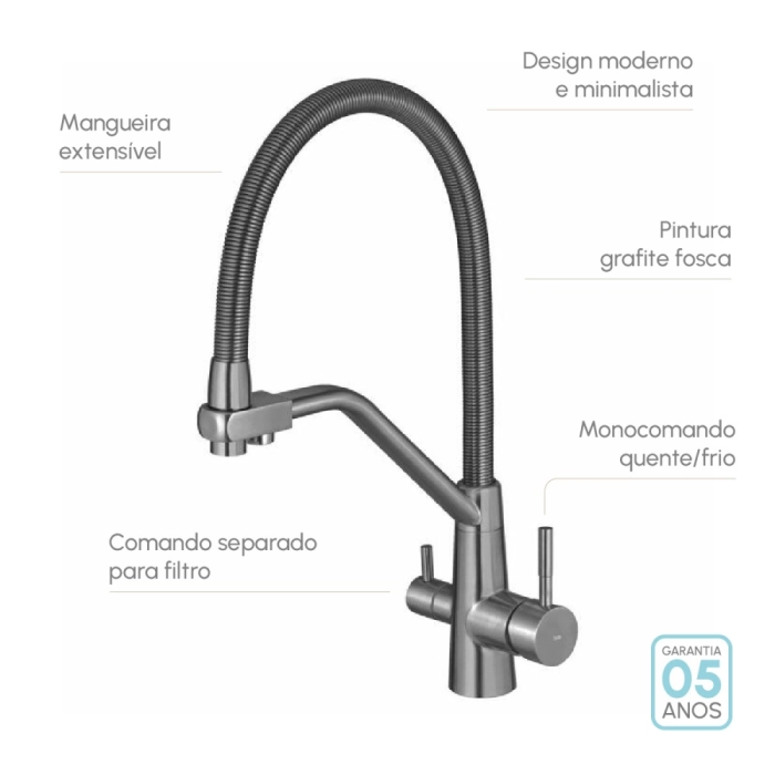 Torneira Monocomando Gourmet de Filtro (Nassau Grafite Fosca)