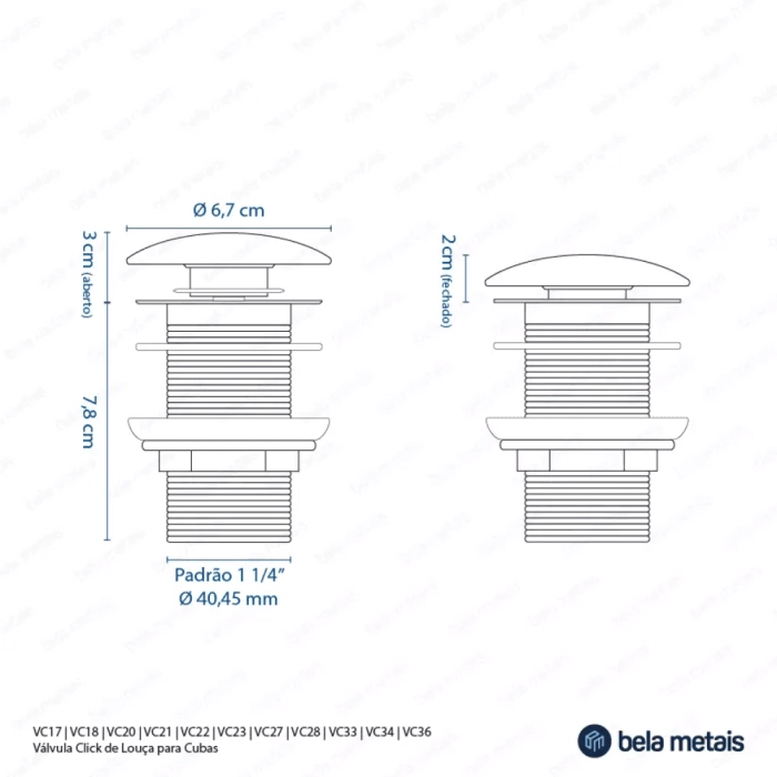 Válvula Click de Louça para Cubas (Mármore Carrara)