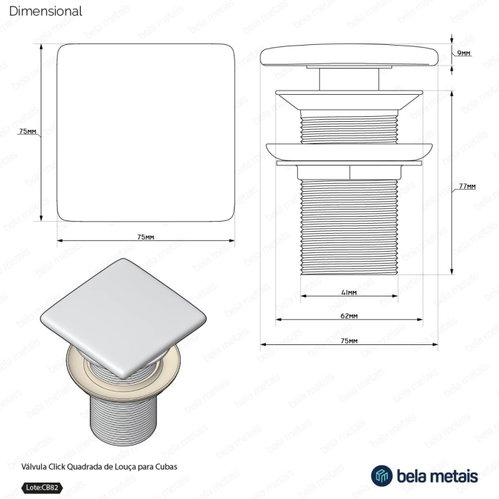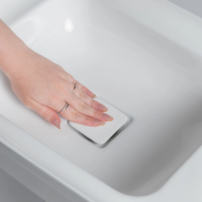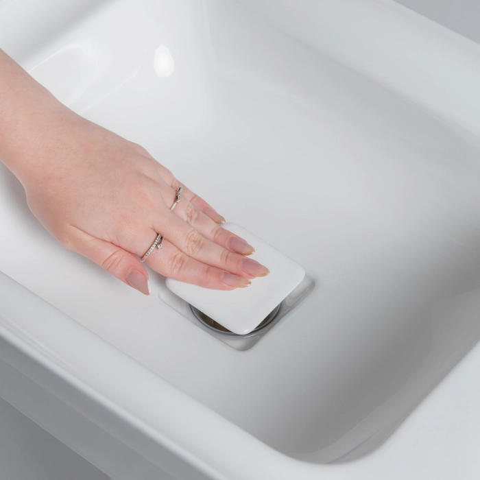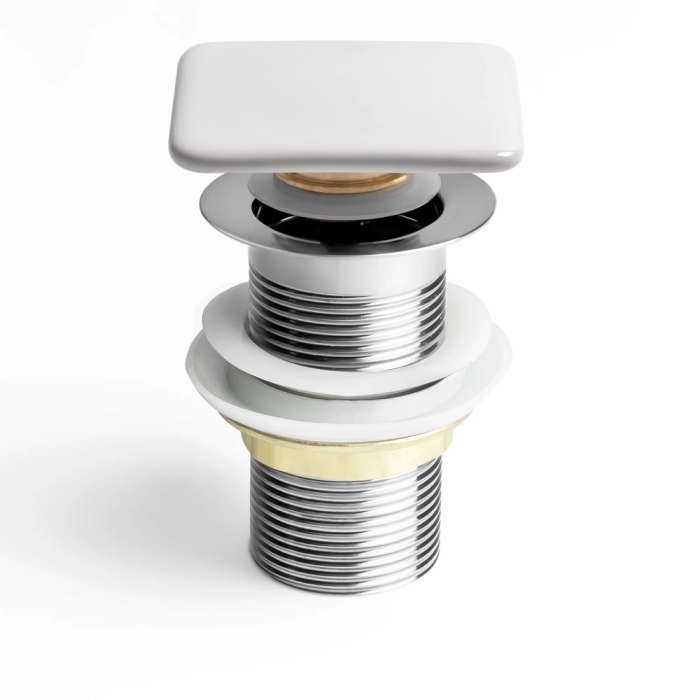 Válvula Click Quadrada de Louça para Cubas (Branca)