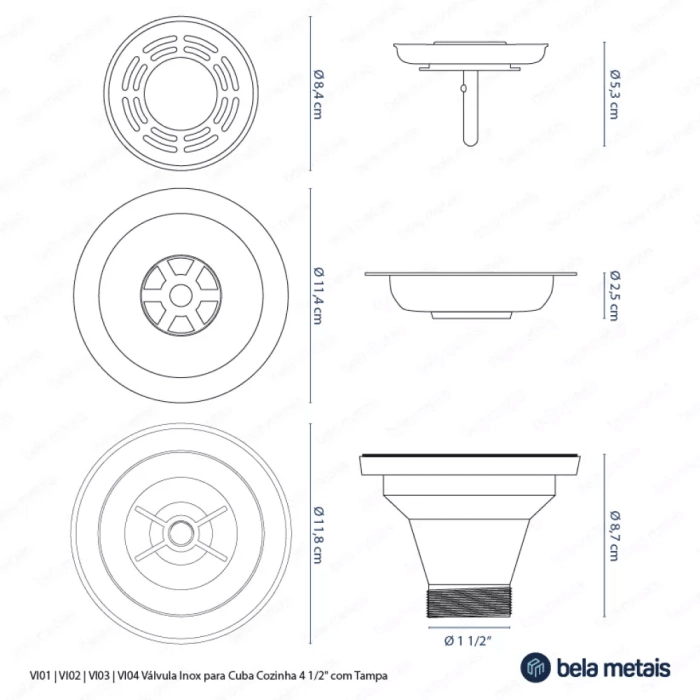 Válvula Inox para Cuba Cozinha 4 1/2" com Tampa (Escovada)