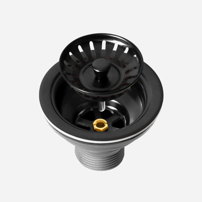 Válvula Inox para Cuba Cozinha 4 1/2" com Tampa (Preta Fosca)